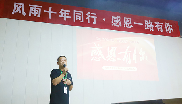 十年老員工劉彬、江虎成、張瑜、李萍分別分享了他們的成長(zhǎng)故事。西迪總技師劉總回憶剛創(chuàng)業(yè)時(shí)的西迪,由當(dāng)時(shí)的幾個(gè)人發(fā)展到現(xiàn)在的將近400人,追憶十多年前大家一起奮戰(zhàn)的日子,感恩感謝同在,希望后面的十五年、二十年、三十年,仍能初心不改。