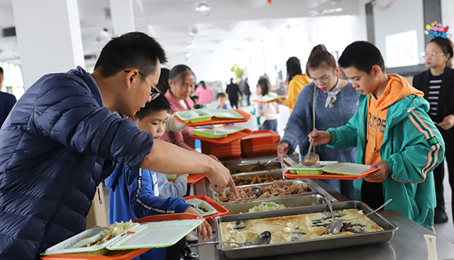 活動最后是親子共餐環(huán)節(jié),也是小朋友們最期待的溫情時光。食堂師傅們準(zhǔn)備的水蒸蛋,土豆紅燒肉、酸辣雞雜等豐富菜品大獲好評。小朋友們驚呼“原來爸爸媽媽每天吃的工作餐這么美味,明天還要來玩!”