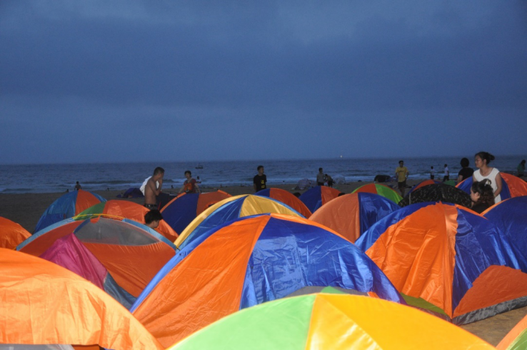 海邊看日出是不少同事對這次海陵島海邊旅行的期待了,集體海報露營,一起看海邊日出是不是更爛漫呢?都等不及第二天早上的到來,一直觀望著海邊,深怕錯過了太陽剛出來的時刻。